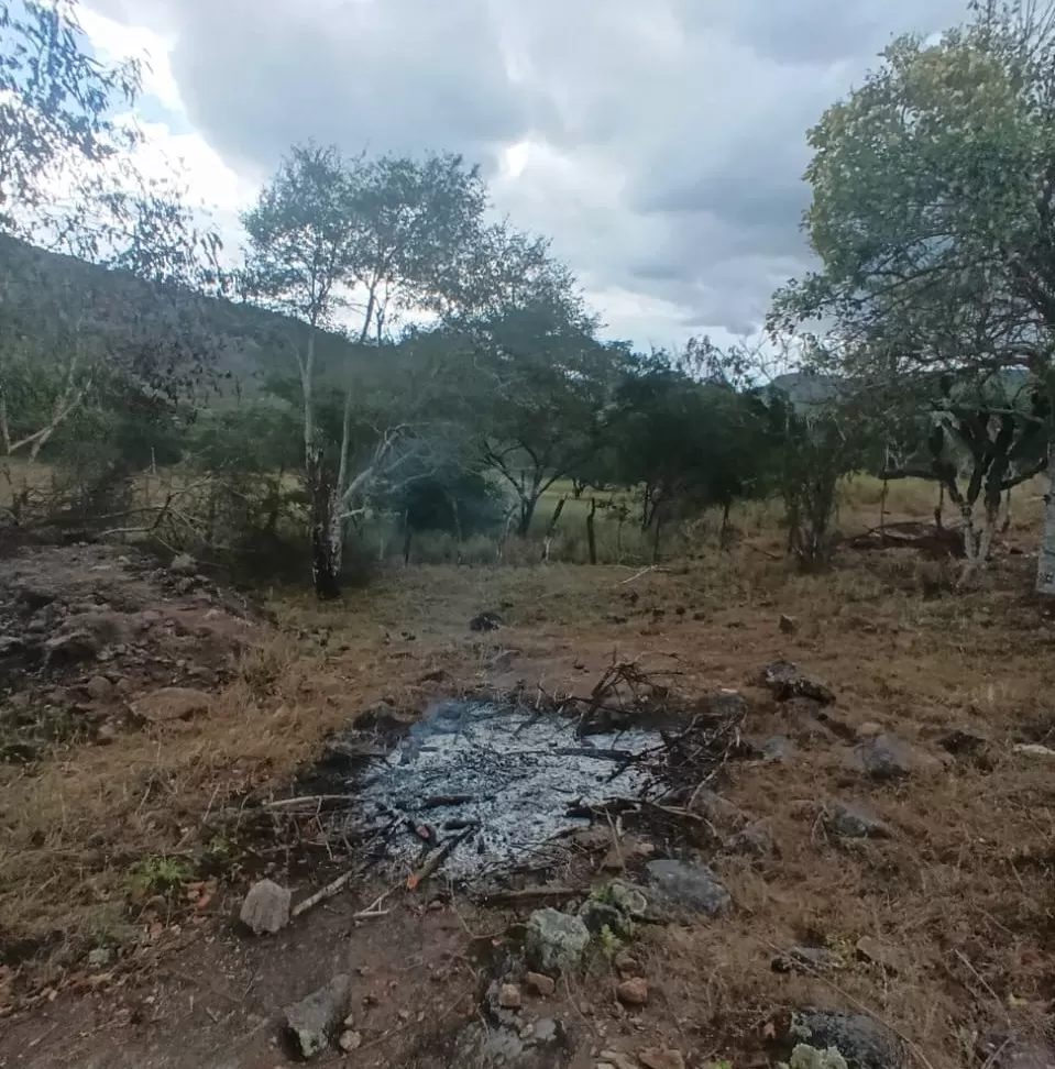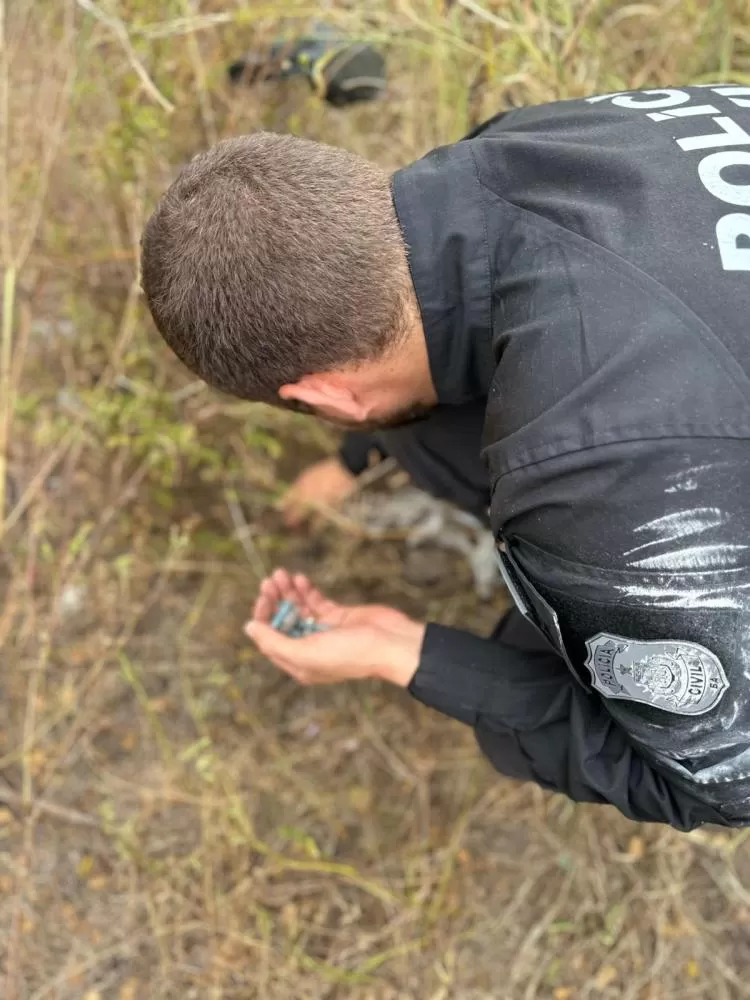 As equipes localizaram uma residência isolada entre montanhas, na zona rural de Anguera, utilizada como ponto de apoio logístico para a prática criminosa. No entorno do imóvel, os policiais encontraram duas fogueiras recentes, uma com cinzas e brasas ainda visíveis, e outra contendo roupas parcialmente queimadas, um frasco de desodorante e um vaso de perfume.