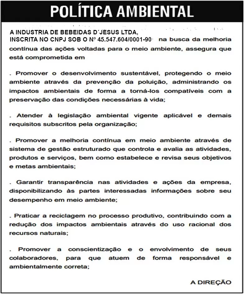 PUBLICAÇÃO DE POLÍTICA AMBIENTAL DE LICENÇA UNIFICADA INDUSTRIA DE BEBEIDAS