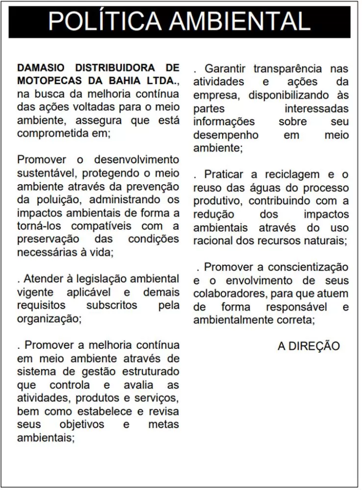 PUBLICAÇÃO DE POLÍTICA AMBIENTAL UNIFICADA DAMASIO MOTOPECAS